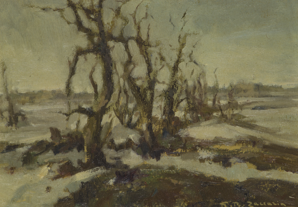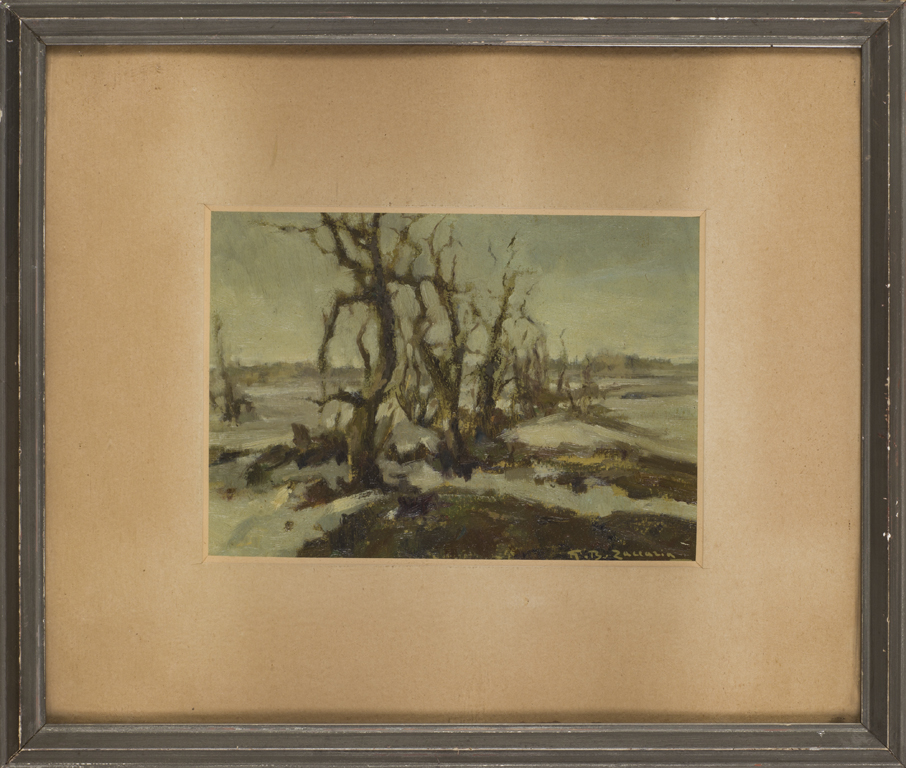 GIOVAN BATTISTA ZACCARIA (1902-1966)InvernoOlio su cartoncinocm 14x20,5Firma...