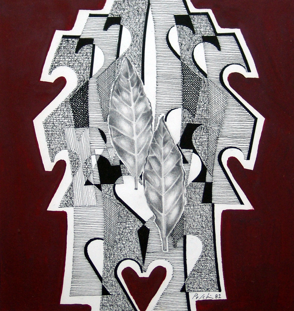 Umberto Peschi 1912, Macerata (Mc) - 1992, Macerata (Mc) - [Italia] Foglie + il tarlo tecnica mista su carta 21x20 cm 1982 firma dell’artista in basso a destra e sul retro; opera con cornice certificato di autenticità Picenum