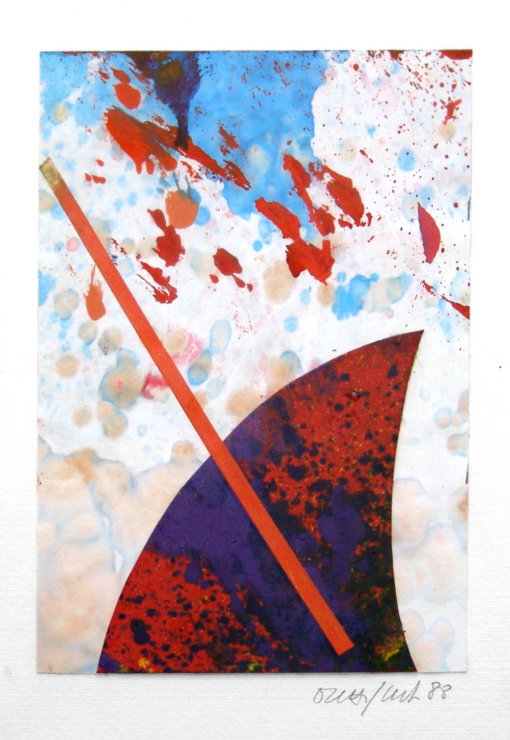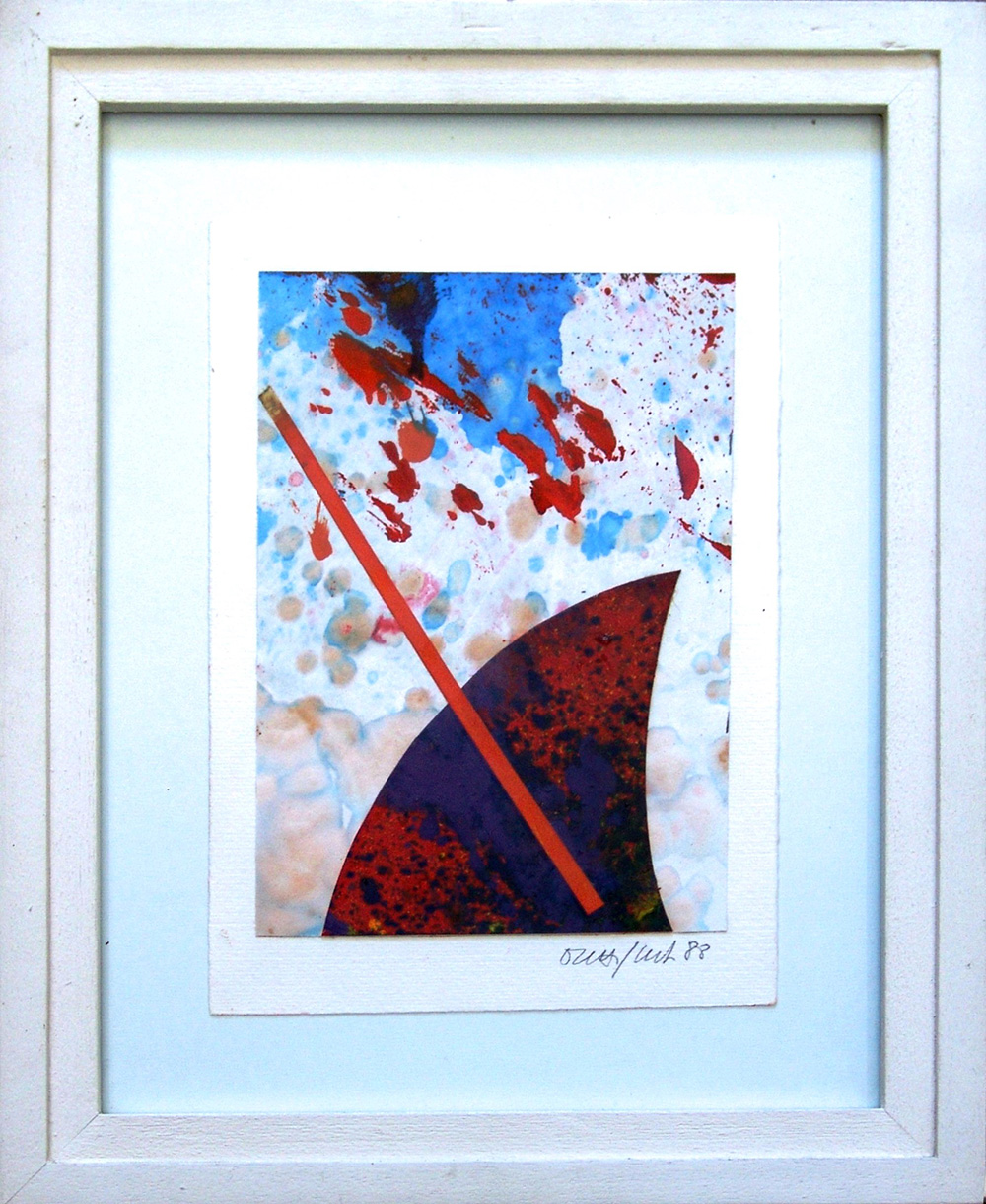 Angela Occhipinti 1969, Catania (Ct) - [Italia] senza titolo tecnica mista e collage su carta 24x17 cm 1988 firma dell'artista in basso a destra; opera con cornice certificato di autenticità dell'artista su fotografia