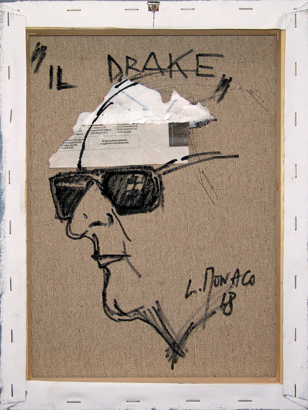 Lucio Monaco 1957, Mosciano Sant'Angelo (Te) - [Italia] Il Drake décollage e acrilico su tela 40x30 cm 2018 firma dell’artista in basso a destra e sul retro certificato di autenticità Picenum