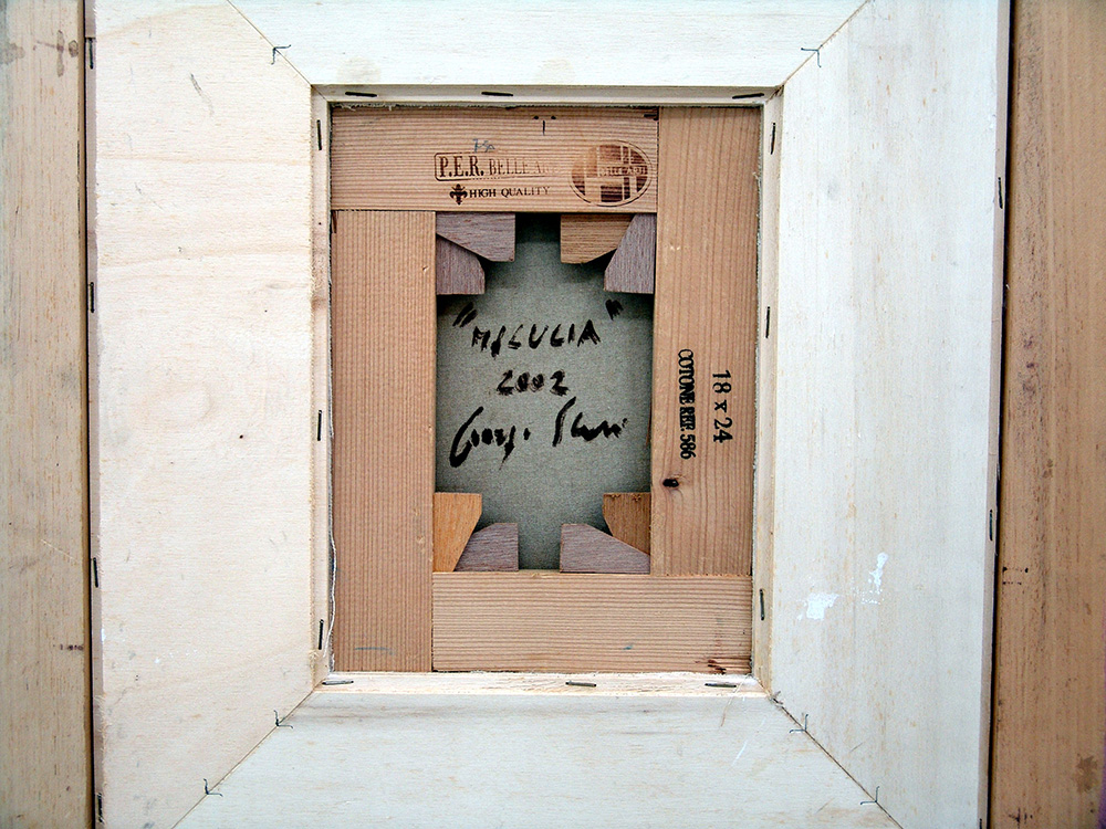 Giorgio Scano 1960, Guspini (Su) - [Italia] Milucia olio su tela 24x18 cm 2002 firma dell’artista in basso a destra e sul retro; opera con cornice certificato di autenticità Picenum