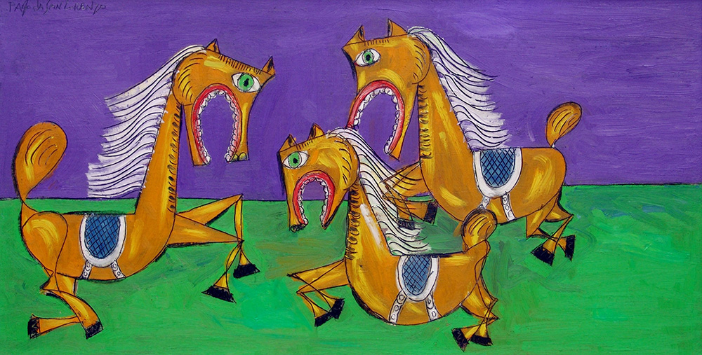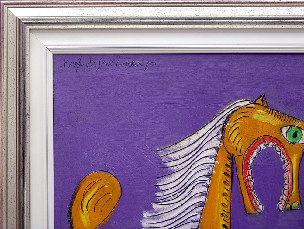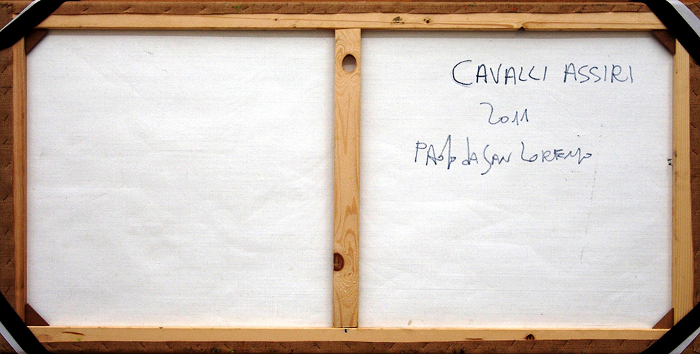 Paolo da San Lorenzo 1935, San Lorenzo in Campo (Pu) - [Italia] Cavalli assiri olio su tela 60x120 cm 2011 firma dell’artista in alto a sinistra e sul retro; opera con cornice certificato di autenticità dell’artista su fotografia