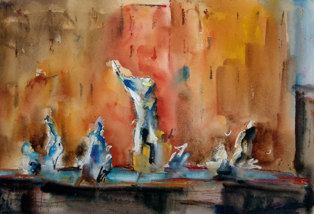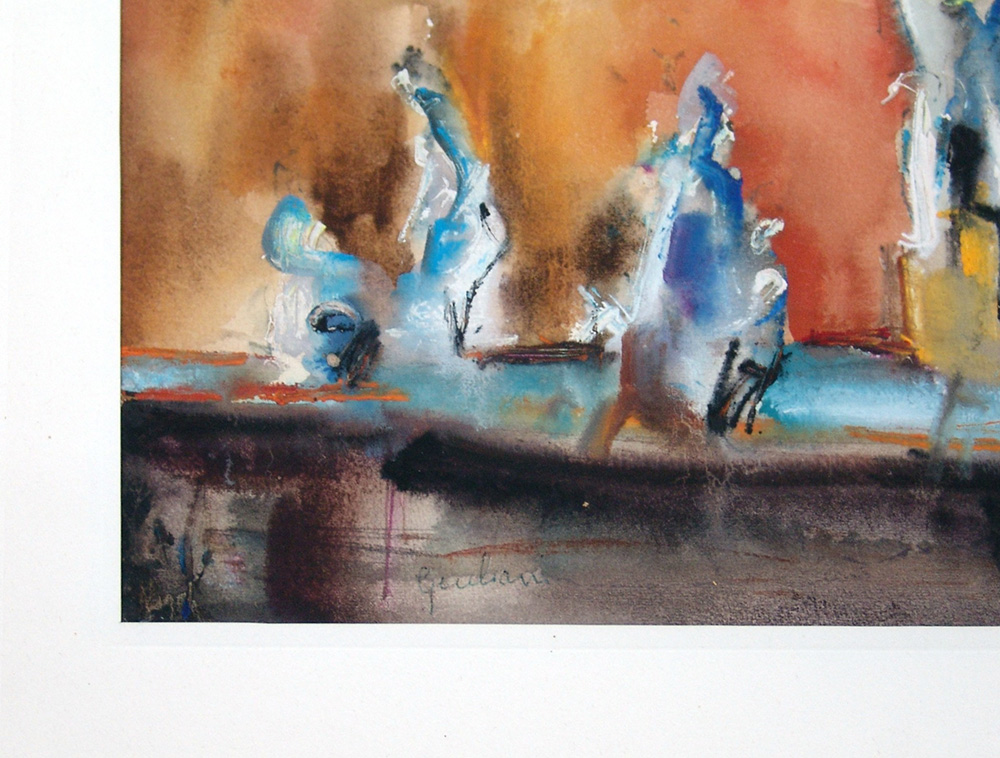 Edmondo Giuliani 1915, Jesi (An) - 2007, Jesi (An) - [Italia] senza titolo acquerello su carta 35x50 cm firma dell'artista in basso a sinistra; opera con cornice certificato di autenticità Picenum