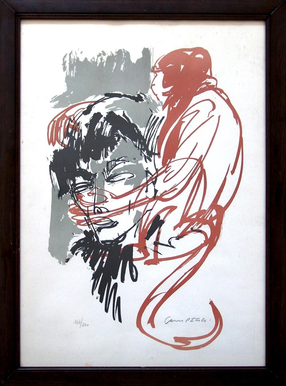 Silvano Campeggi 1923, Firenze (Fi) - 2018, Firenze (Fi) - [Italia] Pianeta delle scimmie litografia 50x35 cm es. 144/300; firma dell'artista in basso a destra; opera con cornice certificato di autenticità Picenum