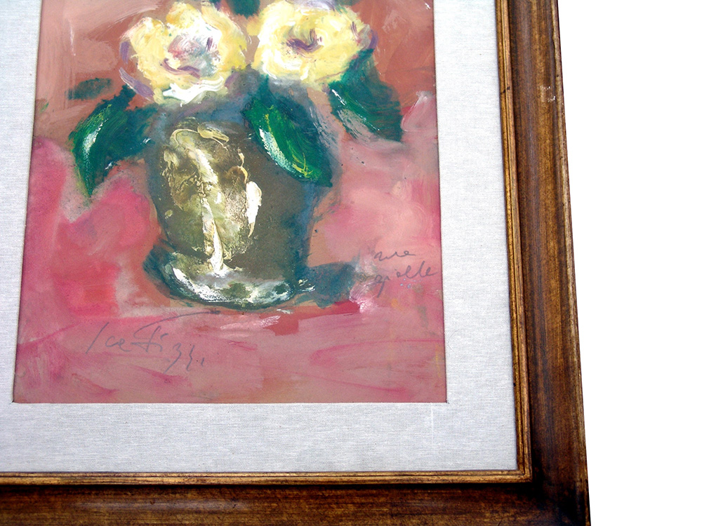 Sergio Scatizzi 1918, Gragnano (Lu) - 2009, Firenze (Fi) - [Italia] Rose gialle tecnica mista su cartoncino 47x32 cm firma dell’artista in basso a sinistra; opera con cornice certificato di autenticità dell'artista su fotografia; certificato di autenticità della Meeting Art di Vercelli