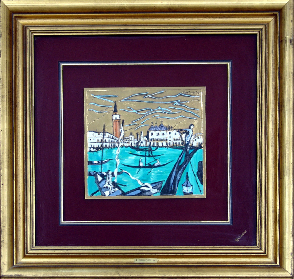 Remo Brindisi 1918, Roma (Rm) - 1996, Lido di Spina (Fe) - [Italia] senza titolo pigmenti su lastra 26x26 cm es. 2/299; firma dell'artista incisa in alto a destra; opera con cornice certificato di autenticità Picenum