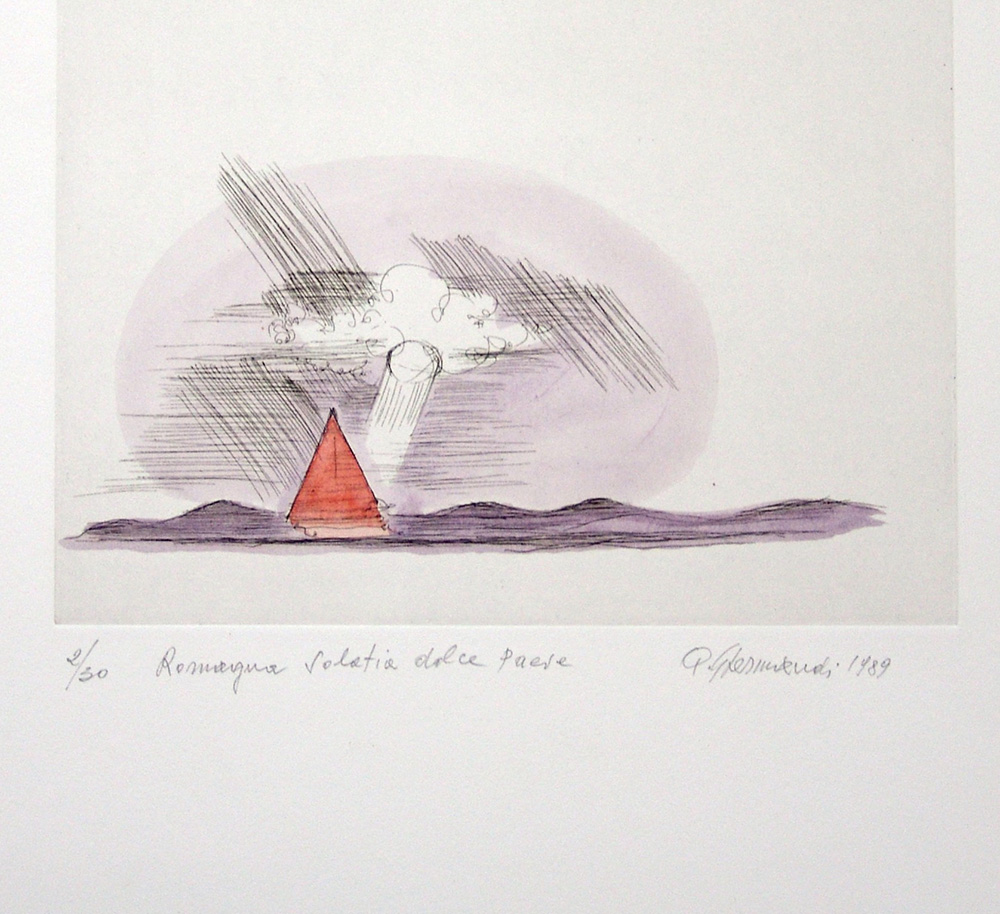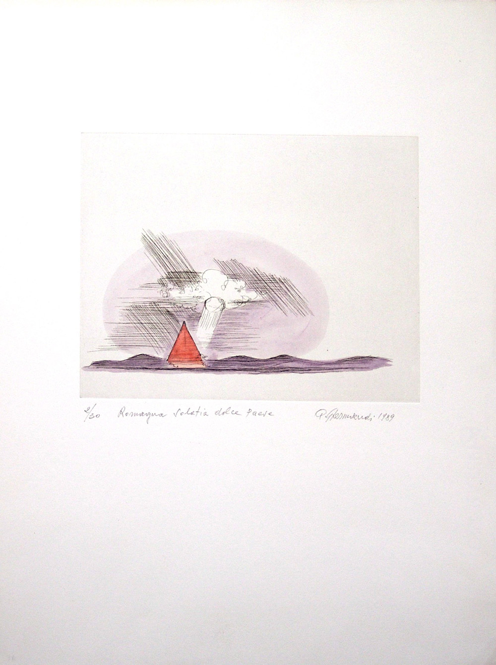 Quinto Ghermandi 1916, Crevalcore (Bo) - 1994, San Lazzaro di Savena (Bo) - [Italia] Romagna volatia dolce paese acquaforte acquatinta 49,5x35 cm 1989 es. 2/30; firma dell'artista a destra certificato di autenticità Picenum