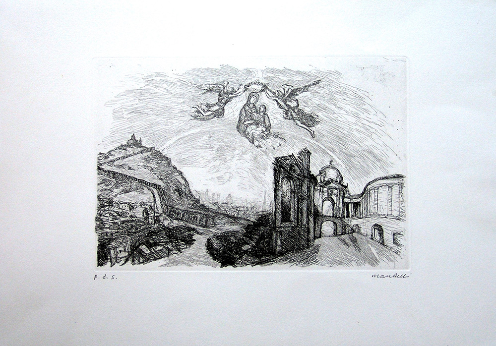 Pompilio Mandelli 1912, Luzzara (Re) - 2006, Bologna (Bo) - [Italia] senza titolo acquaforte 35x49,5 cm es. p.d.s.; firma dell'artista in basso a destra certificato di autenticità Picenum
