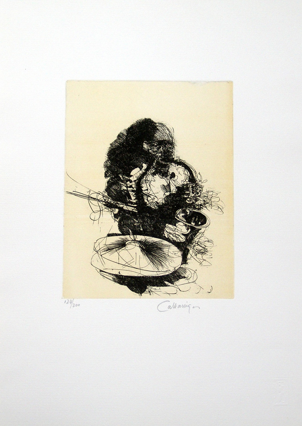 Giancarlo Cazzaniga 1930, Monza (Mb) - 2013, Milano (Mi) - [Italia] Jazz man acquaforte 50x35 cm 1991 es. 124/200; firma dell'artista in basso a destra certificato di autenticità Picenum