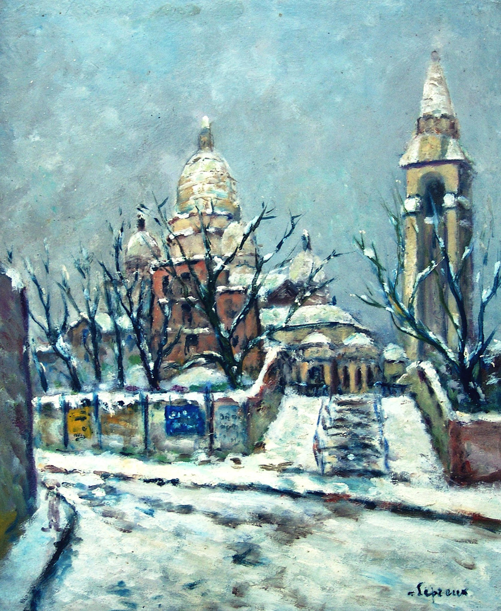 Albert Lepreux 1868, Parigi - 1959, Parigi - [Francia] Sanctuary olio su cartone 46x38 cm firma dell’artista in basso a destra; opera con cornice certificato di autenticità della Meeting Art di Vercelli