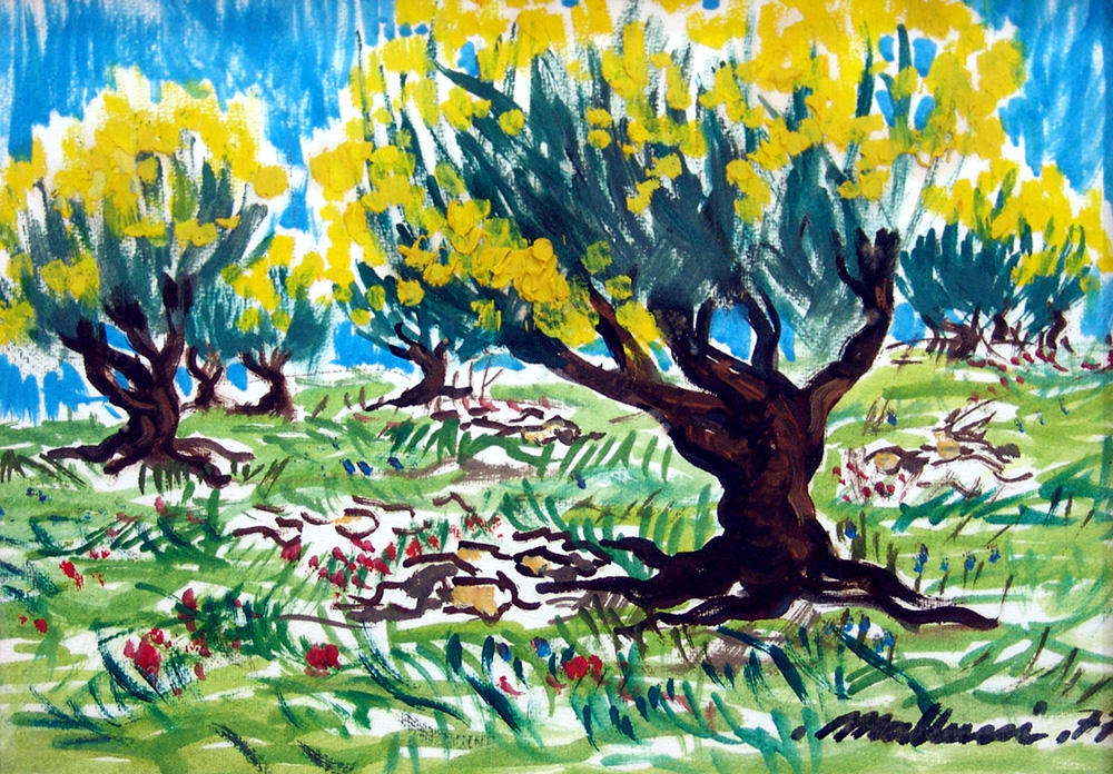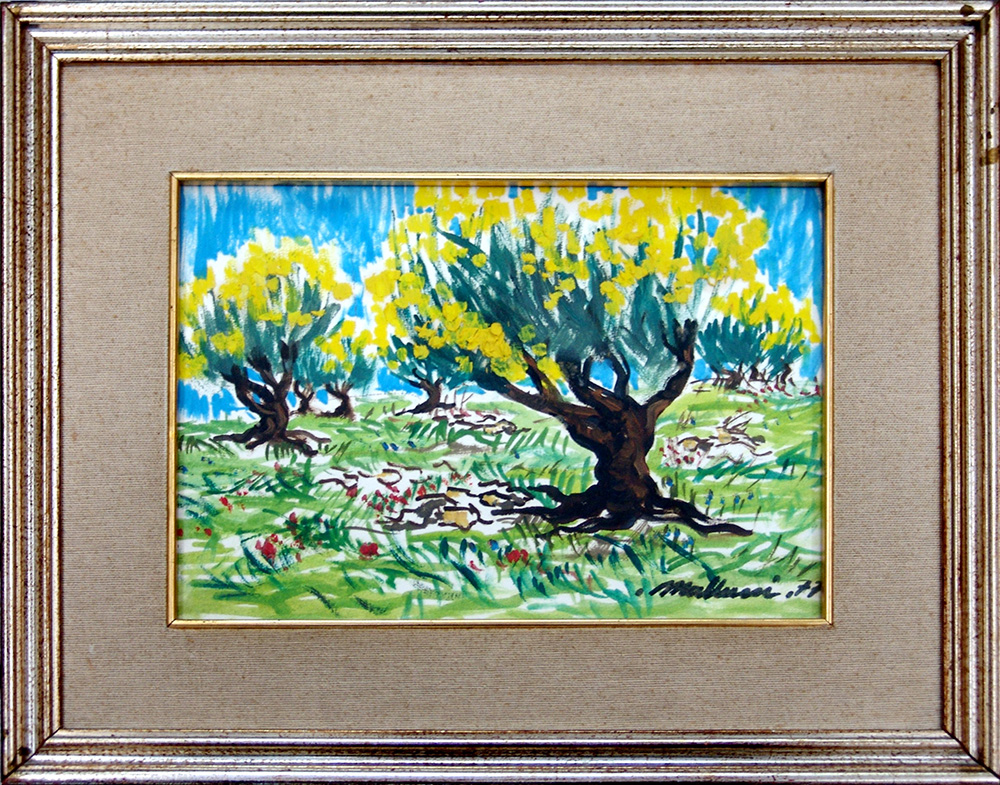 Luigi Mallucci 1935, Ostra (An) - 2008, Senigallia (An) - [Italia] senza titolo olio su carta 22x31 cm 1977 firma dell'artista in basso a destra; opera con cornice certificato di autenticità Picenum