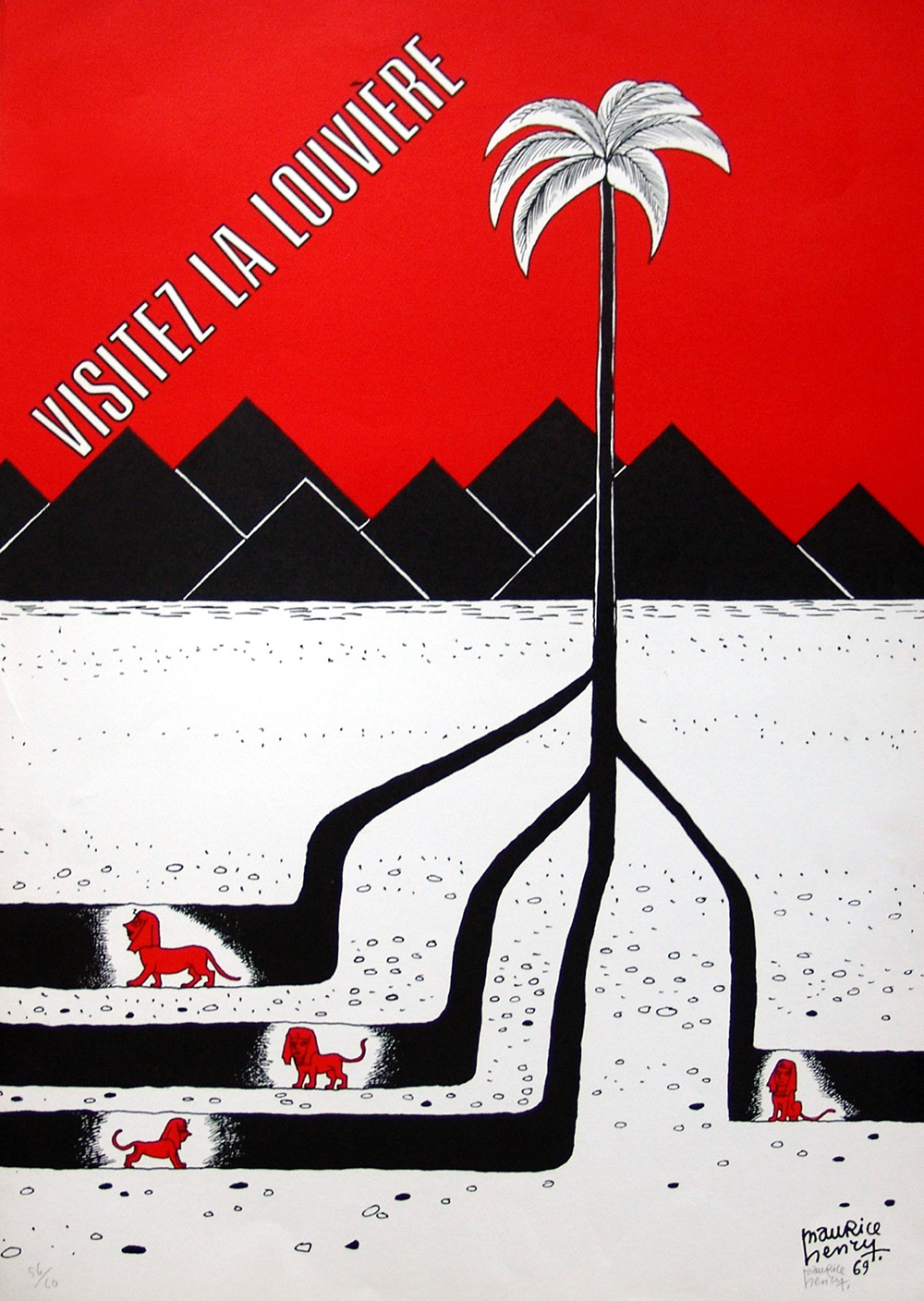 Maurice Henry 1907, Cambrai (Francia) - 1984, Milano (Mi) - [Francia] Visitez la Louvière litografia 86x60 cm 1969 es. 56/60; firma dell'artista in basso a destra certificato di autenticità Picenum