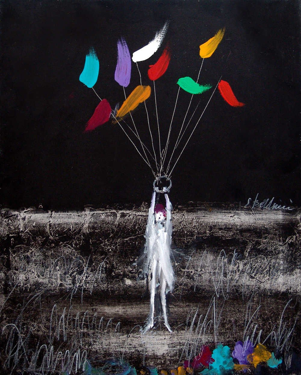 Sirio Bellucci 1924, Fabriano (An) - 2013, Macerata (Mc) - [Italia] La discesa acrilico su tela 50x40 cm 2001 firma dell’artista a destra certificato di autenticità Picenum