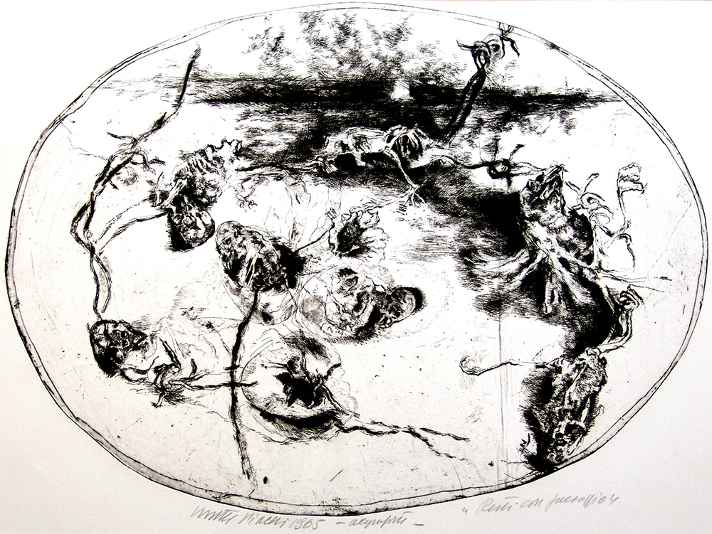 Walter Piacesi 1929, Ascoli Piceno (Ap) - [Italia] Resti con paesaggio acquaforte 40x60 cm 1965 non numerato; firma dell’artista in basso a destra certificato di autenticità Picenum; opera pubblicata nel catalogo generale dell'opera grafica di Walter Piacesi