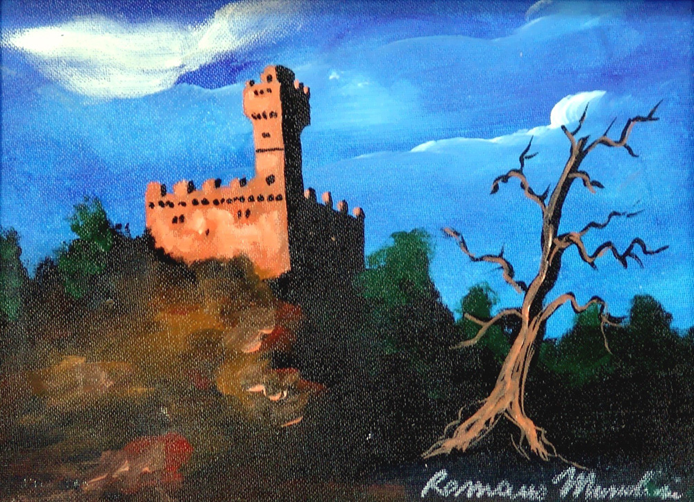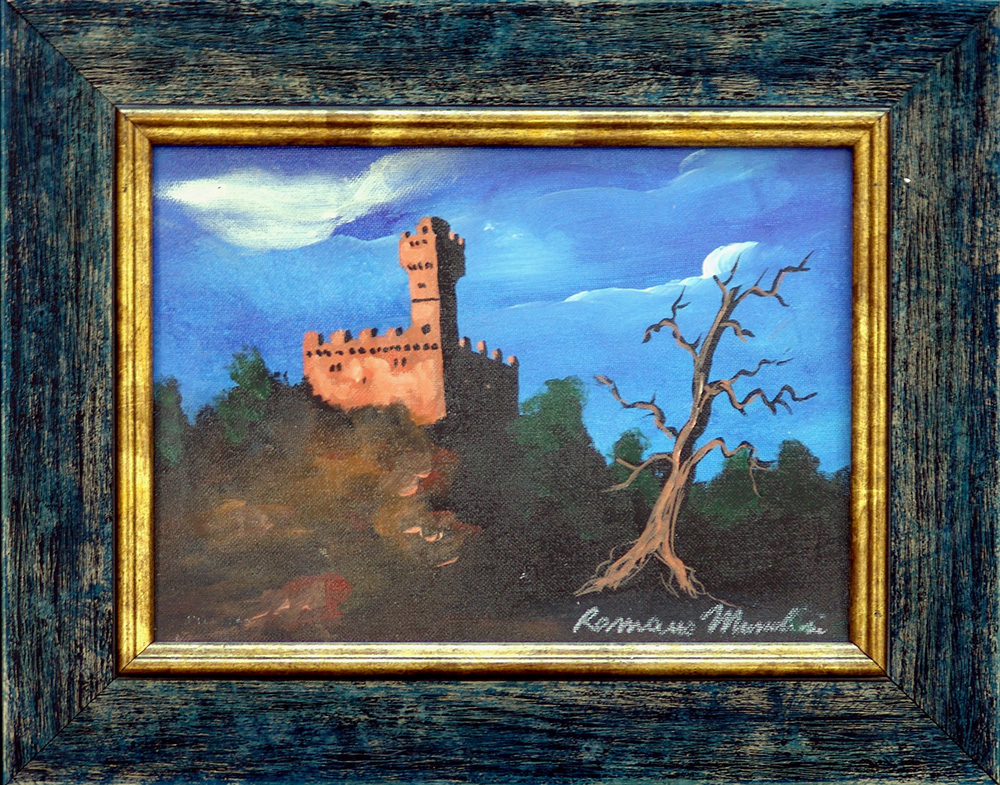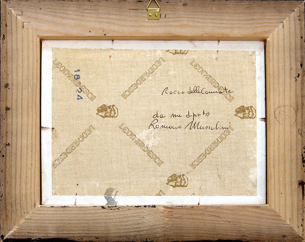 Romano Mussolini 1927, Forlì (Fc) - 2006, Roma (Rm) - [Italia] Rocca delle Cannate olio su cartone telato 18x24 cm firma dell'artista in basso a destra e sul retro; opera con cornice certificato di autenticità Picenum