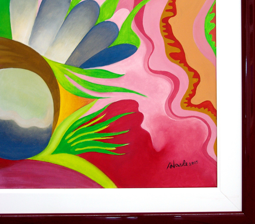 Anna Vasile 1953, Modugno (Ba) - [Italia] Valzer dei fiori acrilico su tela 50x50 cm 2015 firma dell'artista in basso a destra e sul retro; opera con cornice certificato di autenticità Picenum