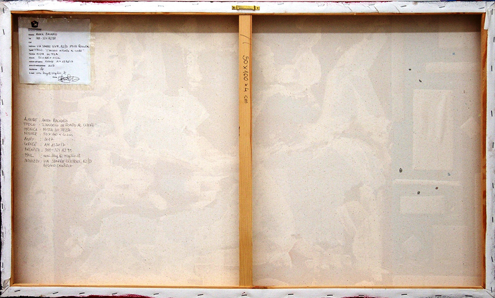 Anna Bagnato 1967, Melito di Porto Salvo (Rc) - [Italia] L'angolo in fondo al cuore tecnica mista su tela 50x100 cm 2017 firma dell'artista in basso a sinistra certificato di autenticità dell'artista sul retro