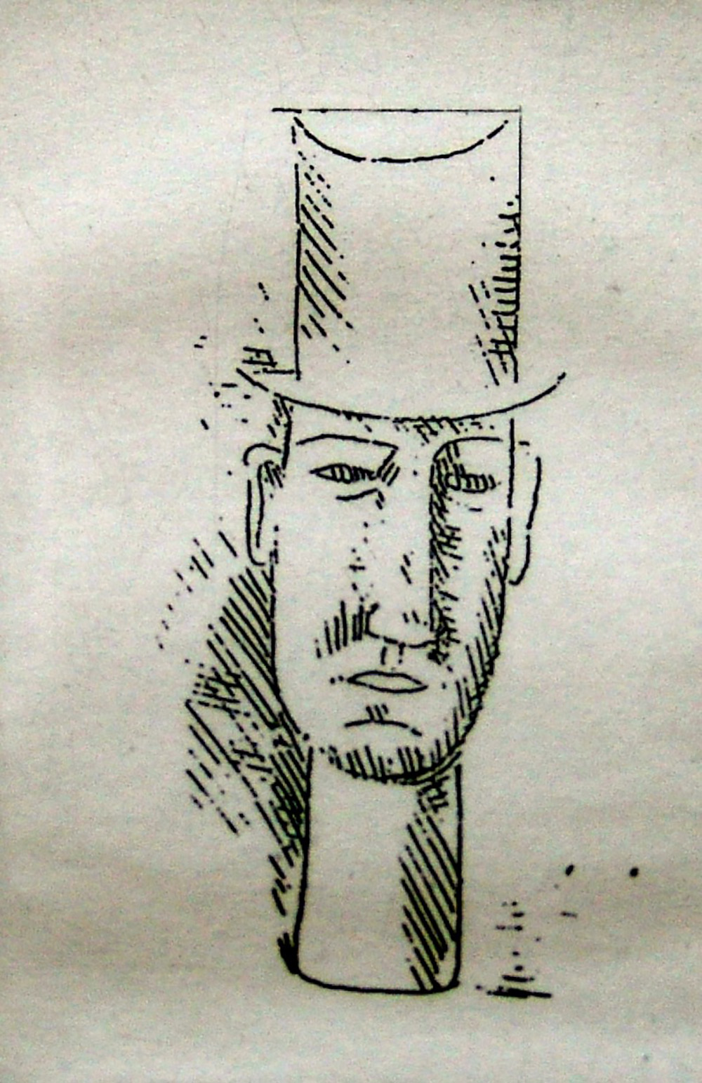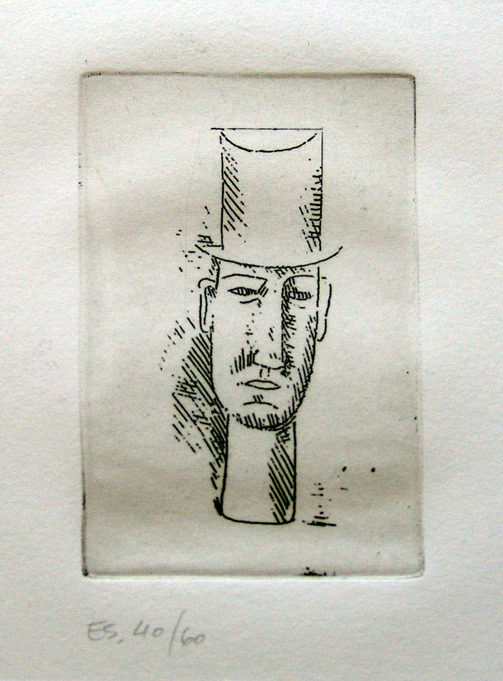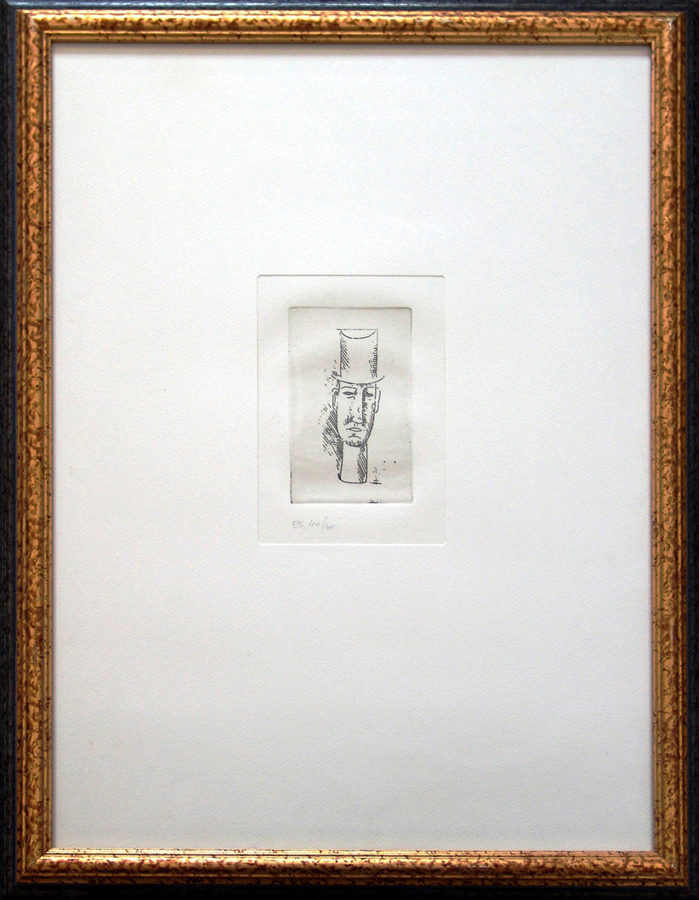 Carlo Carrà 1881, Quargnento (Al) - 1966, Milano (Mi) - [Italia] Testa di gentiluomo acquaforte 53x38 cm 1971 es. 40/60; lastra incisa nel 1922; f.to incisione 13x7,9 cm; Editore Luigi De Tullio; opera con cornice autentica di Massimo Carrà sul retro con timbro dello Studio Carrà