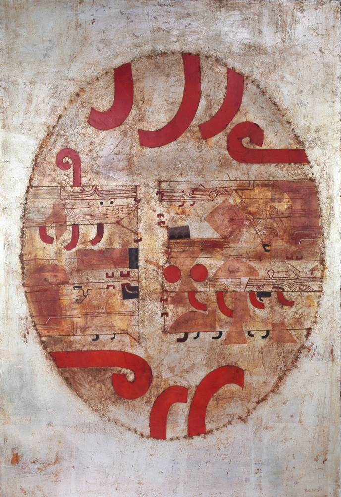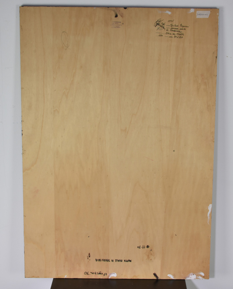 Gustavo Foppiani MAPPA OVALE DI TARQUINIA olio su tavola, cm 100x70 firmato e datato sul retro: firmato, titolato e datato eseguito nel 1970 Provenienza: Galleria Forni, Bologna Collezione privata, Bologna