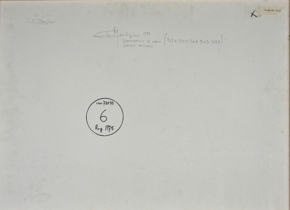 Elio Marchegiani GRAMMATURE DI COLORE pigmento su intonaco, cm 53x73 sul retro: firmato, titoltato e datato. Registrazione: N. 6 reg. 1975 eseguito nel 1975 Provenienza: Galleria Giraldi, Livorno Collezione privata