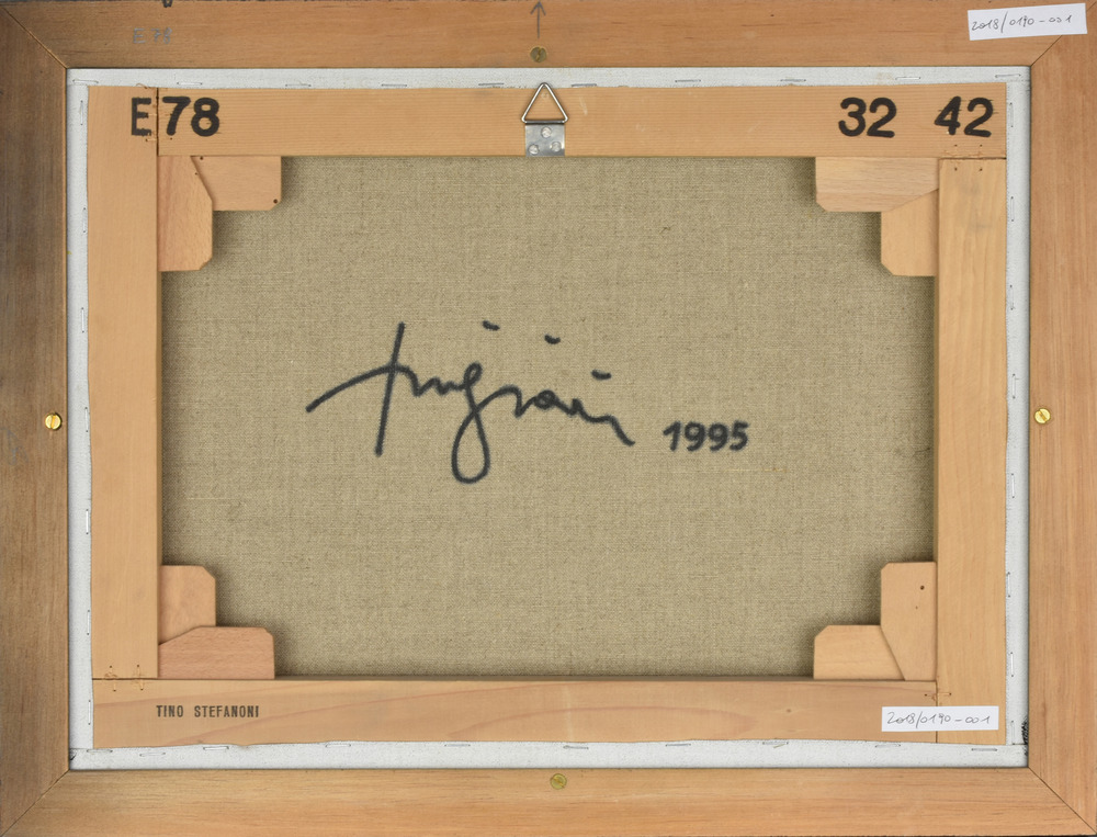 Tino Stefanoni PRIGIONI acrilico su tela, cm 32x42 sul retro: timbro Tino Stefanoni, titolato e datato eseguito nel 1995 Provenienza Acquisito direttamente dall’artista dall’attuale proprietà