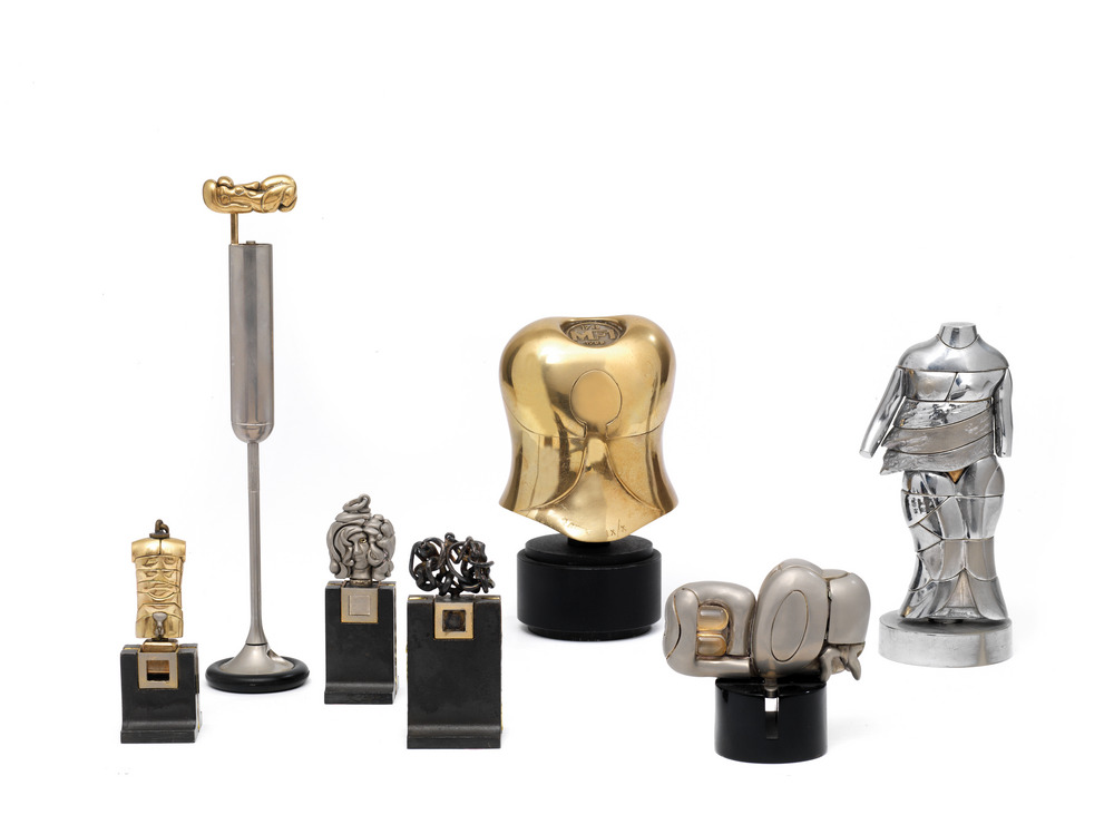 Miguel Berrocal MICHELINE X - Opus 139 metallo Zamak, h cm 9 firmato eseguito nel 1975-1976 Accompagnato da istruzioni di montaggio MINI ZORAIDA - Opus 111 metallo Zamak, h cm 7; es. 722/9.500 firmato e numerato eseguito nel 1969-1970 MINI CARIATIDE - Opus 109 metallo Zamak, h cm 15; es. 1.435/9.000 firmato e numerato eseguito nel 1968-1969 MICRO DAVID-OFF- Opus 120 bronzo al berillio placcato oro, h cm 7 eseguito tra il 1969-1972 Accompagnato da istruzioni di montaggio MICROMENTO - Opus 150 metallo, h cm 9 Accompagnato da libretto TORSO MFI bronzo lucidato, h cm 14,5; es. IX/X - 10 prove d'artista in numeri romani firmato e numerato eseguito nel 1986-1987 Quest'opera e` stata appositamente creata dall'artista per il 40° anniversario della nascita della MFI MICROFUSIONE ITALIANA (la scultura porta sull'esterno, al centro, in alto, l'iscrizione: 1948 MFI 1988). eseguito nel 1988 MARTEAU REFLEXE - Opus 436 bronzo lucidato, h cm 23,5; es. LXXIV/C firmato e numerato eseguito nel 1992-1993 Edizione ARTCURIAL Diffusion, Parigi. Edizione fuori commercio realizzata per il laboratorio PFIZER, limitata a 2.000 copie firmate e numerata da 1 / 2.000 a 2.000 / 2.000. 100 prove d'artista firmate e numerate in numeri romani. Accompagnato da istruzioni di montaggio (7)