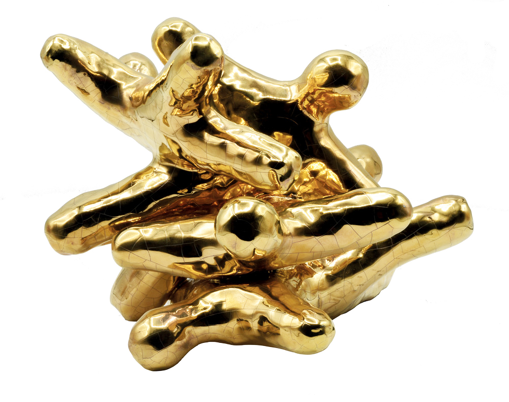 Alberto De Braud FINE DEL GIOCO maiolica oro, cm 29x24x22 siglato e datato eseguito nel 2010 L'opera è accompagnata da autentica dell'artista su fotografia Esposizioni: Open. Scelte linguistiche e formali, Magazzini per l’arte contemporanea, Trapani, 2012 Pop up Design Tour, AAM Arte accessibile, Spazio Eventiquattro - Il Sole 24 Ore, Milano, 2013 Summer Show, Alberto de Braud Galleria d'Arte Nino Sindoni, Asiago, 2017