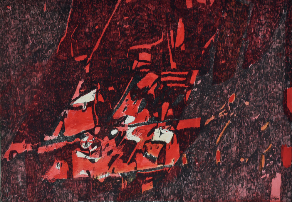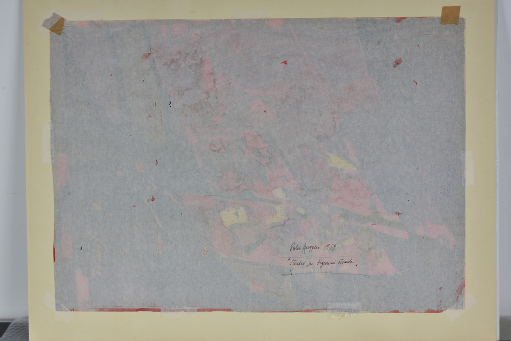 Piero Ruggeri STUDIO PER FIGURE IN STRADA tecnica mista su carta, cm 49x69 firmato sul retro: firmato, titolato e datato eseguito nel 1959