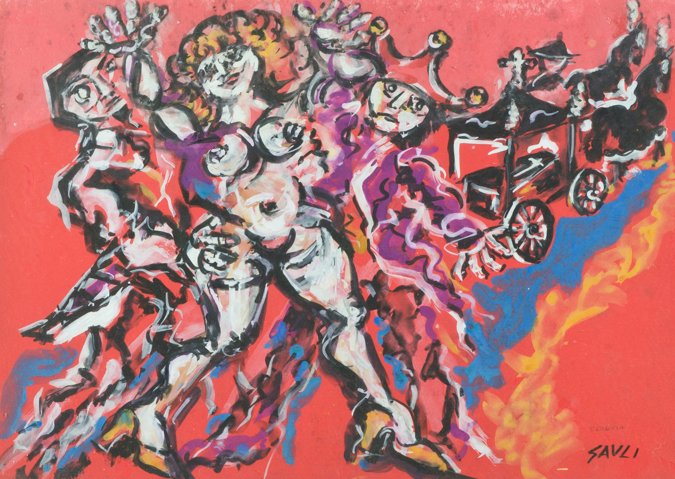 Piero Gauli Lotto unico di due Opere - "Lazzaro", Tempera su carta, cm. 47x68, firma e titolo in basso a destra; - "L'esclusa", Tempera su carta, cm. 47x68, firma e titolo in basso a destra.