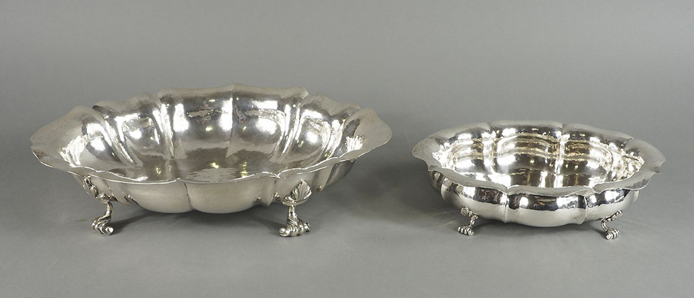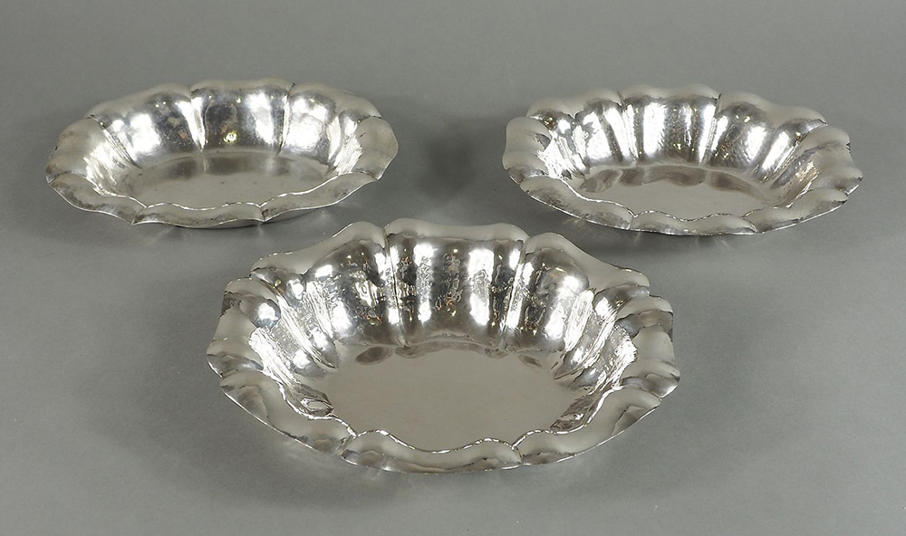 Lotto di 5 ciotole ovali in argento con bordo sagomato. Gr. 1520.