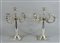 Paio di grandi candelabri in argento a 5 fiamme con teste di cigno. H. cm....