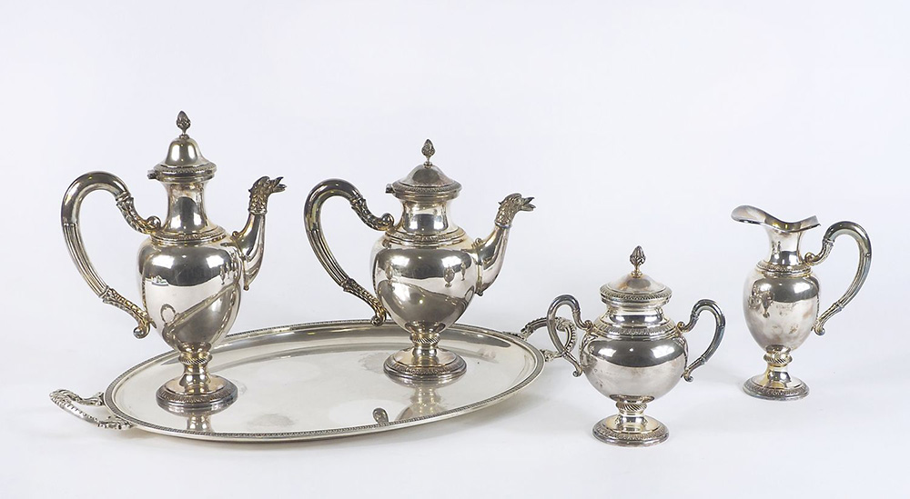 Servizio da caffè e thè in argento composto da 5 pezzi. Gr. 1890.