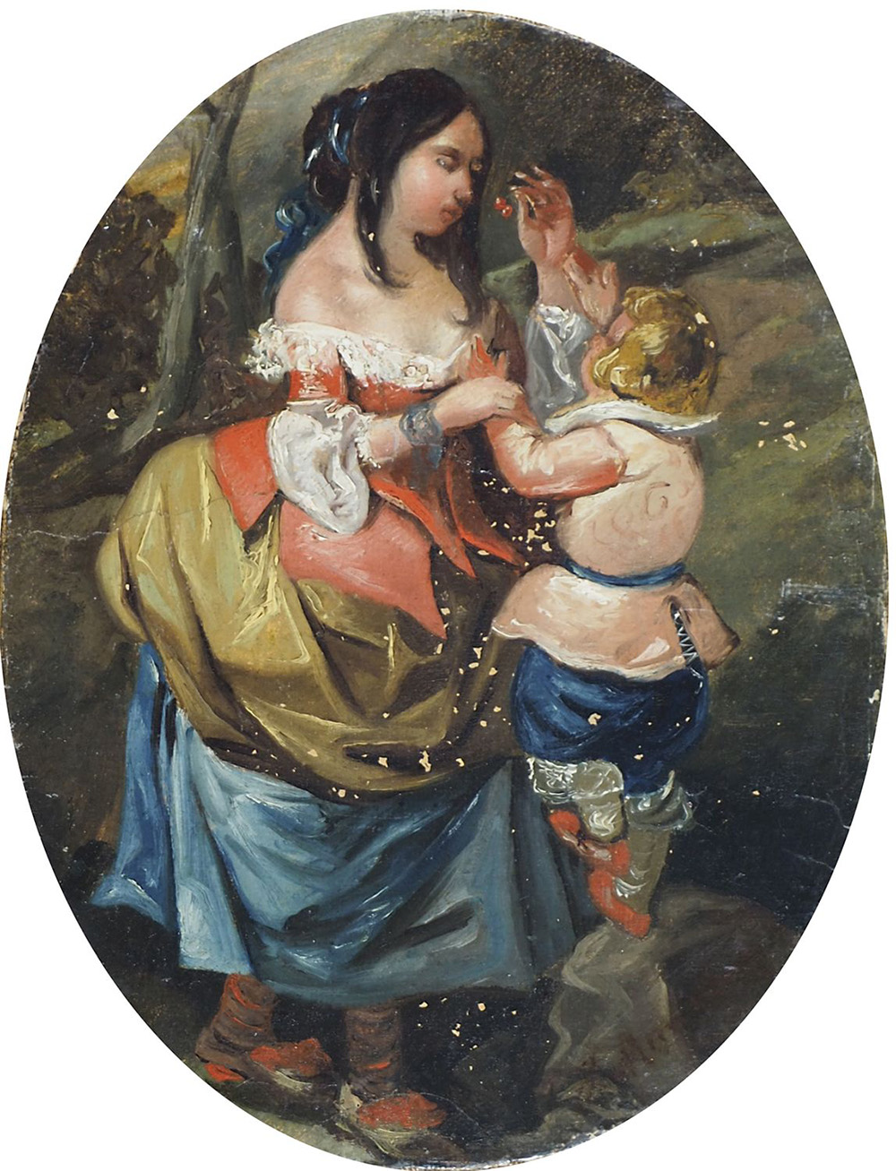 Maestro del XIX secolo "Scena storica" cm. 28x21 - olio su tela (ovale) Firmato F. Mancini.