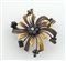 Spilla rotonda a forma di fiore in oro giallo e pietre blu, al centro...