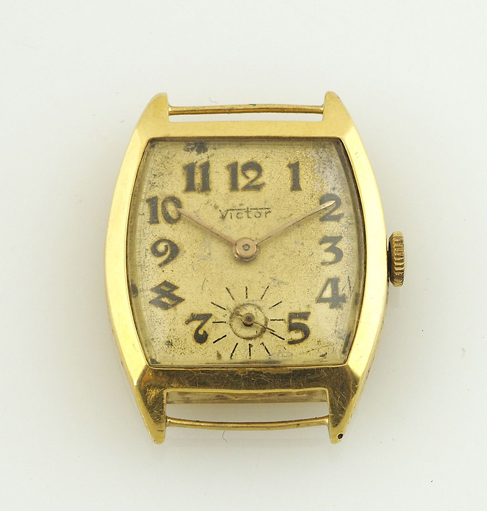 Victor: orologio da polso da uomo con cassa in oro giallo, quadrante con secondi al sei.