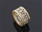 Anello a fascia in oro giallo e bianco con lavorazione a traforo e piccoli...