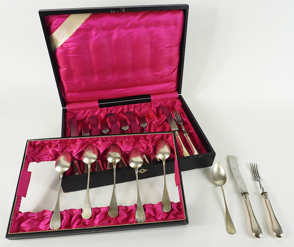 Servizio di posate in argento composto da 18 pezzi, entro teca originale. gr. 450.