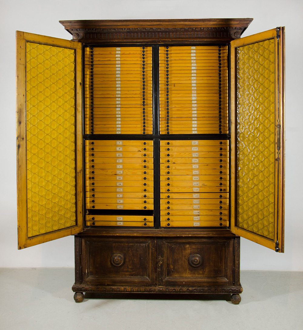 Armadio/monetiere a due ante a vetri e due piccole ante nella parte...