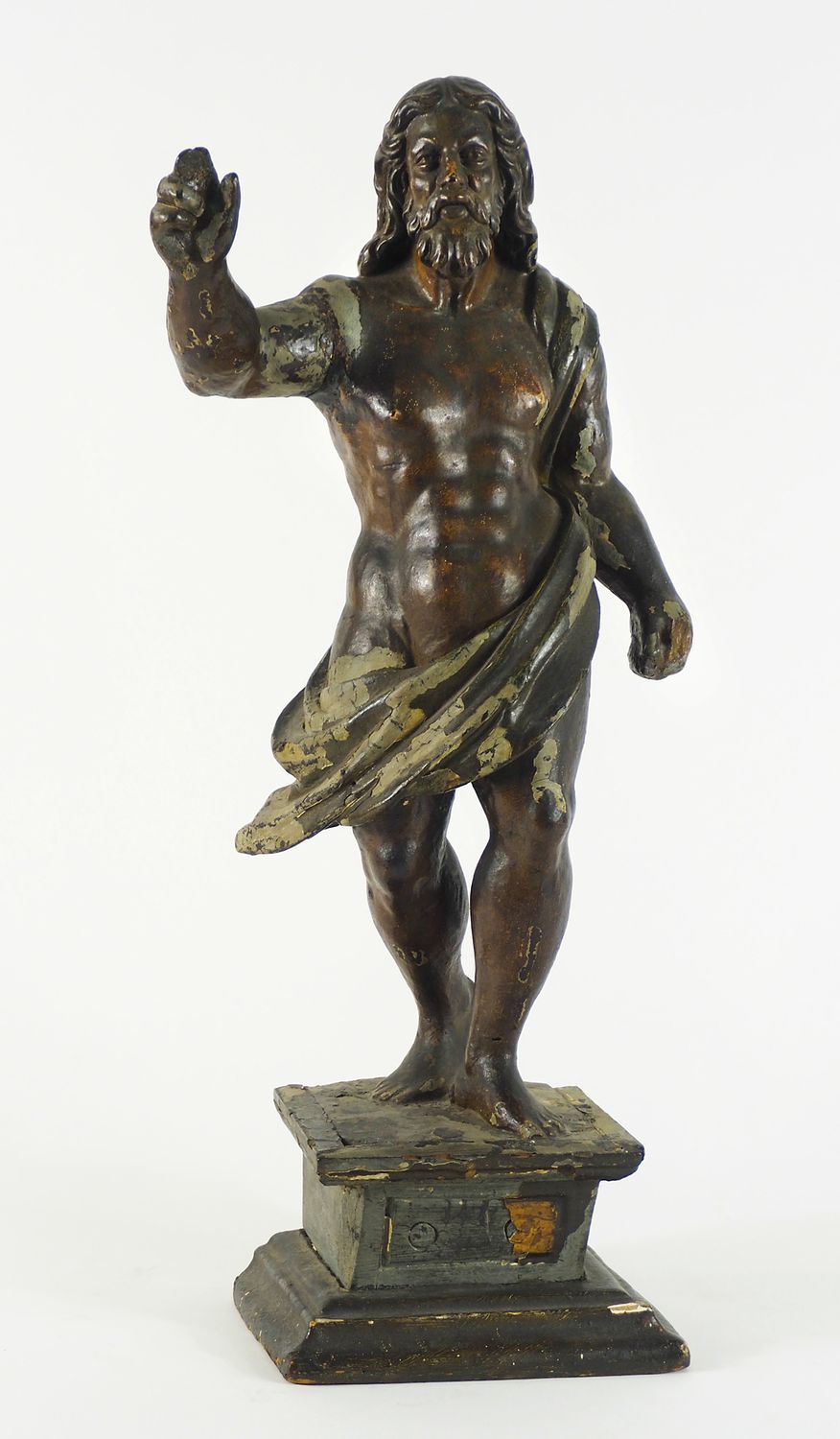 Scultura in legno scolpito raffigurante Cristo. H. cm. 54. (difetti).
