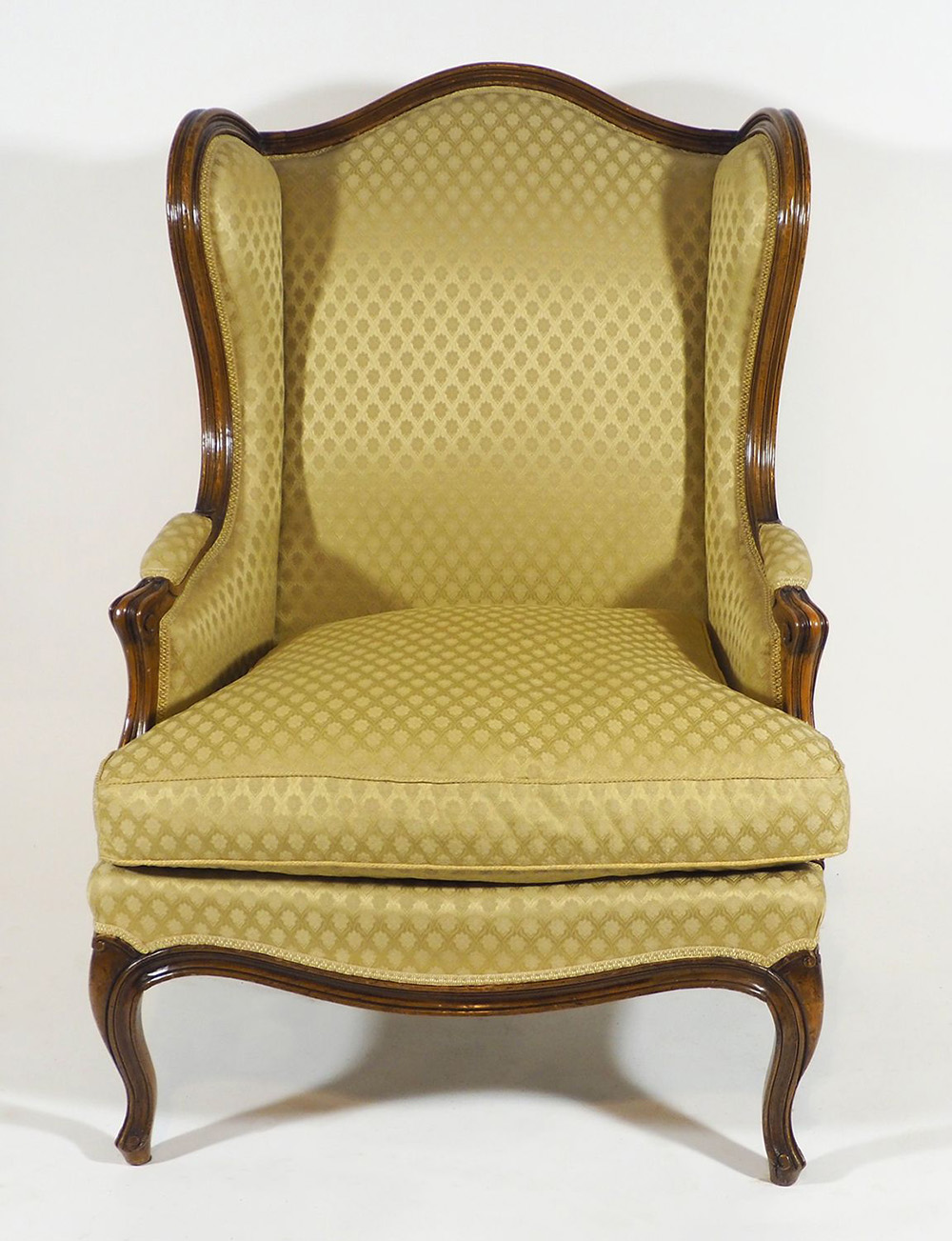 Poltrona in legno con alto schienale ad orecchie. XIX secolo.