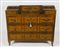 Cassettone in legno a 5 cassetti e calatoia, decorato ad intarsi in legni...