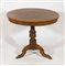 Tavolo rotondo in legno con intarsi in legni vari. H. cm. 70, diam. cm. 78.
