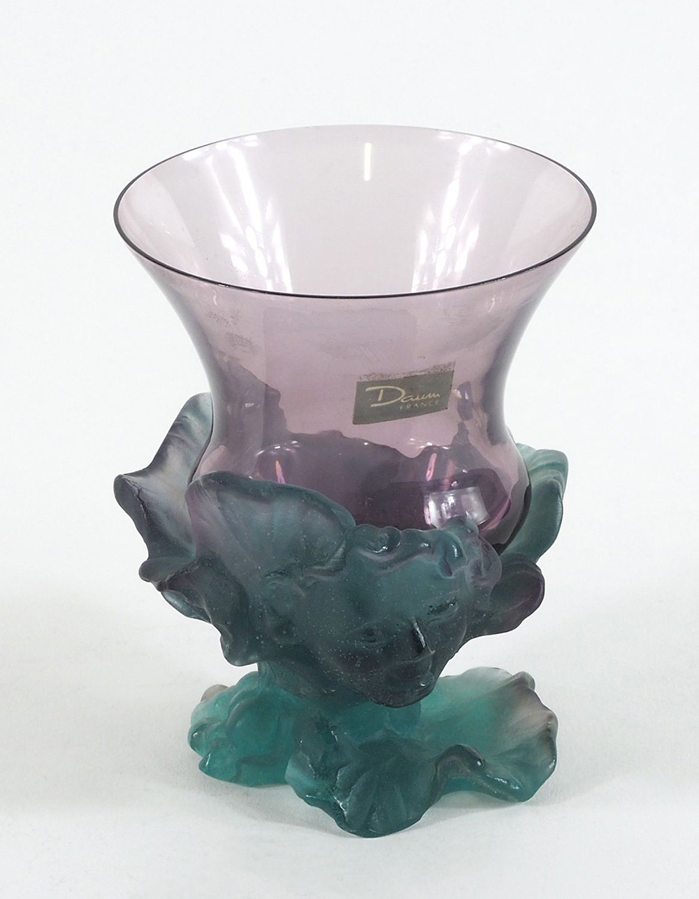 Daum: vasetto in vetro decorato con teste femminili. Firma incisa sotto la...