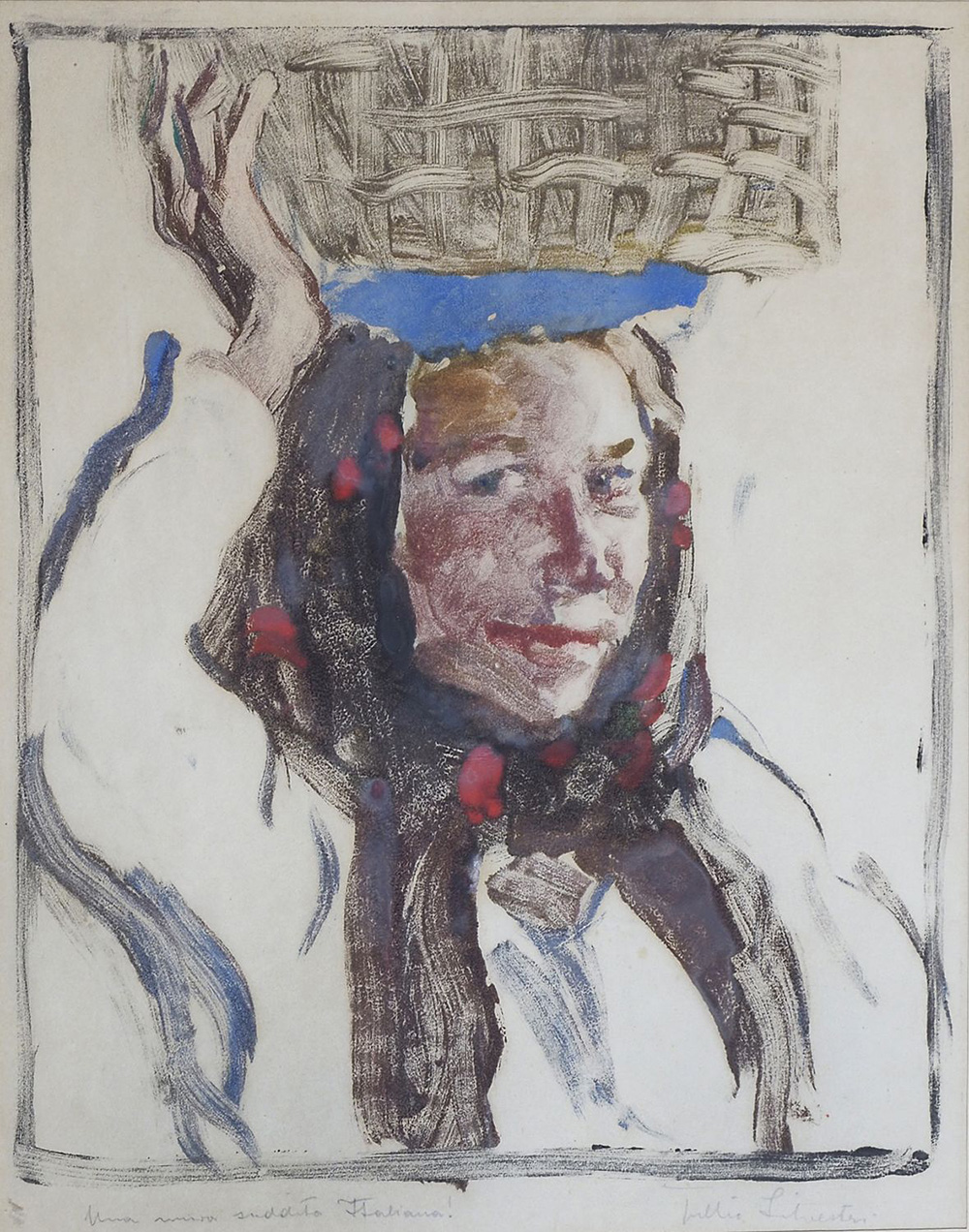 Tullio Silvestri Venezia 1880-Trieste 1963 "Popolana italiana" cm. 51x42 - monotipo su carta Firmato b. a d.