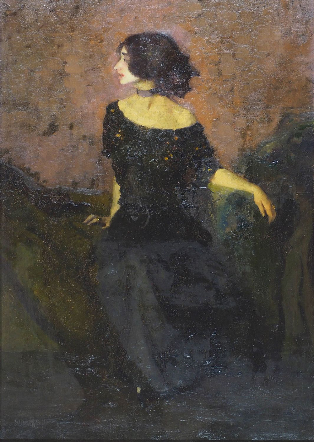 Gino Parin Trieste 1876 Dachau 1944 "Preparativi per la serata" cm. 83x60 - olio su tavola Firmato b. a s. e datato 1915.