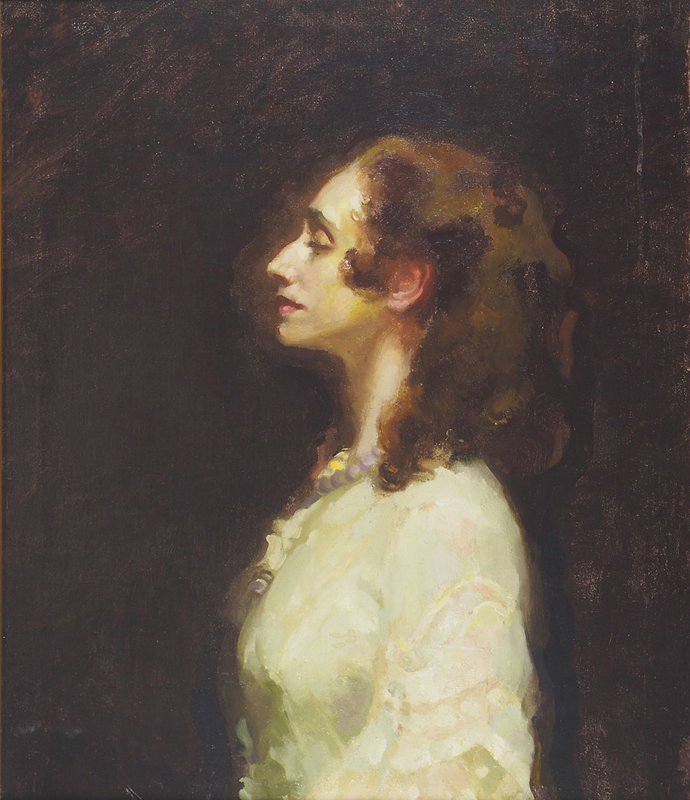 Gino Parin Trieste 1876 Dachau 1944 "Profilo femminile" cm. 74x61 - olio su tela foderata Autentica al retro di Maddalena Springer.