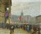 Giovanni Zangrando Trieste 1867-1941 "La festa dell'annessione in Piazza Grande" cm. 60x75 - olio su tela Firmato b. a s. Prov.: collezione Basilio Trieste; Stadion Trieste 1998.