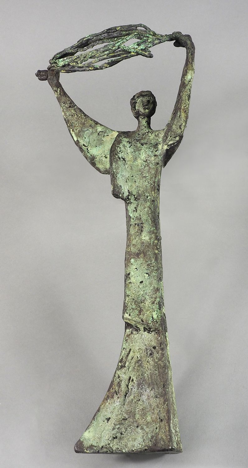 Ugo Carà 1908-2005 "Donna nel vento" h. cm. 40 - scultura in bronzo a patina verde