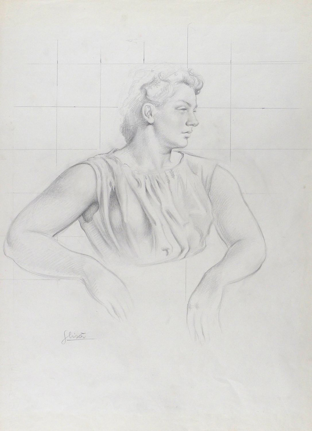 Carlo Sbisà Trieste 1899-1964 "Ritratto di profilo" cm. 66x48 - disegno a matita Firmato b. a s.