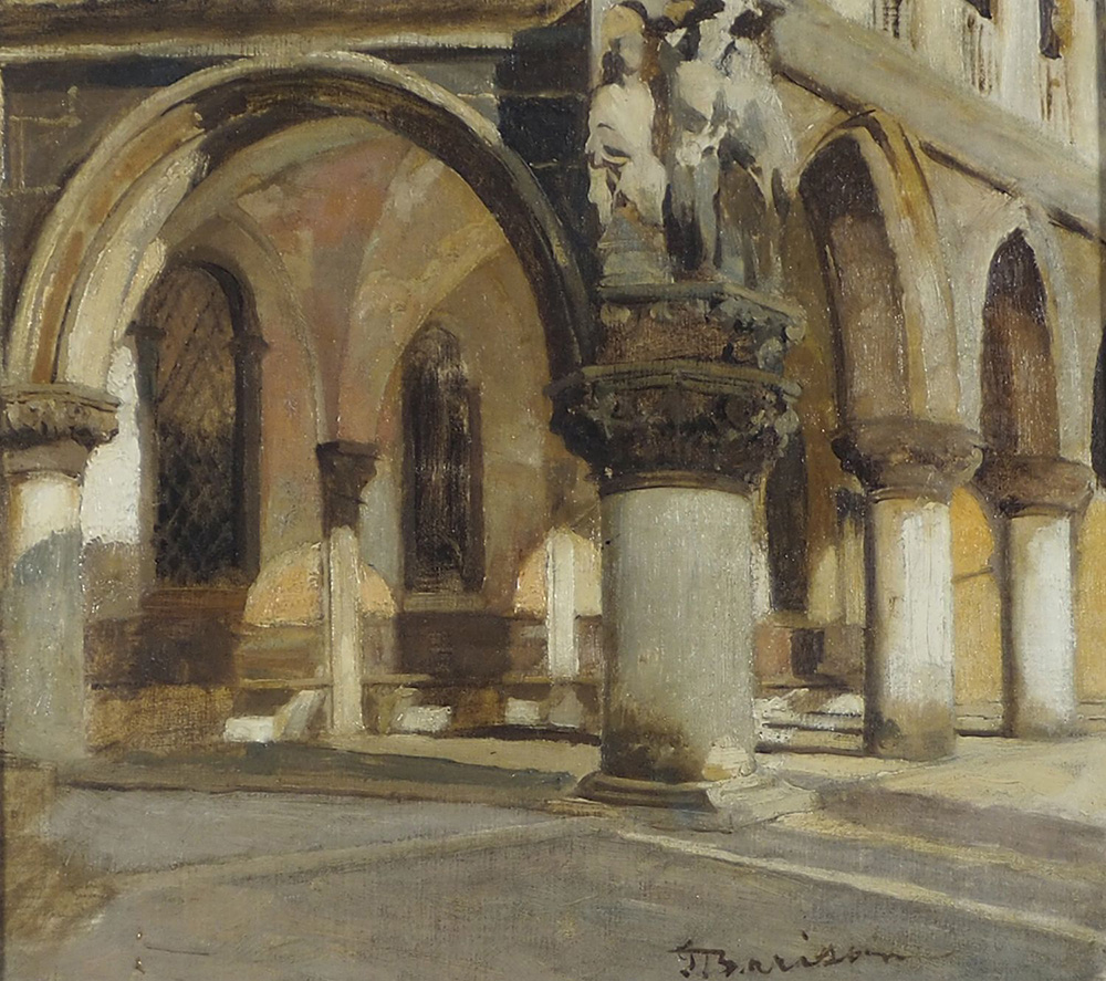 Giuseppe Barison Trieste 1853-1931 "Venezia, Palazzo Ducale" cm. 22x25 - olio su cartone Firmato b. a d.